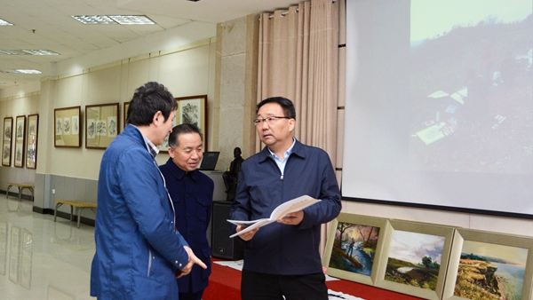 4月17日,艺术学院美术专业学生王聪“我心我塑” 毕业油画展在艺术展厅拉开帷幕,校党委书记龙治刚参观了画展。龙治刚在参观中对王聪的创作水平给予了肯定,并勉励他抓住重点,大胆突破,创作出更好的作品