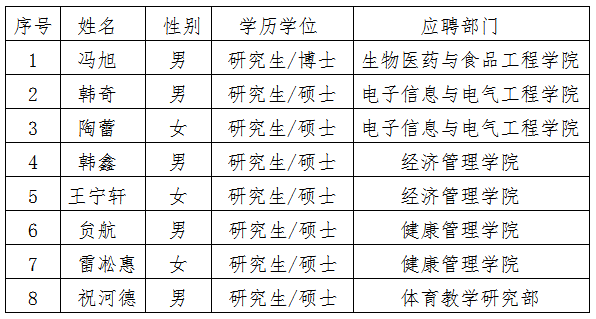 best365中国官方网站2020年第二批招聘教师名单(8人)
