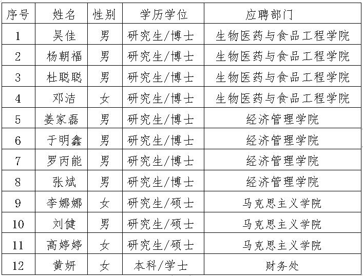 best365中国官方网站2020年第四批拟招聘人员名单(12人)