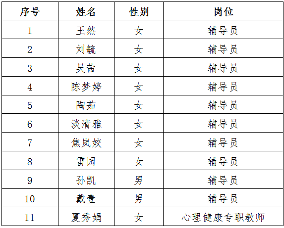 附件:best365中国官方网站2021年辅导员及心理健康专职教师拟录用人员名单