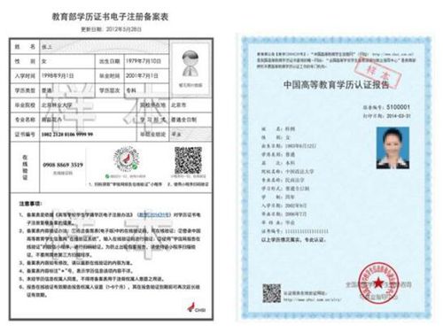 除上述对应类别应该提交的材料外,还须上传教育部留学服务中心出具的《国外学历学位认证书》原件。示范照片如下: