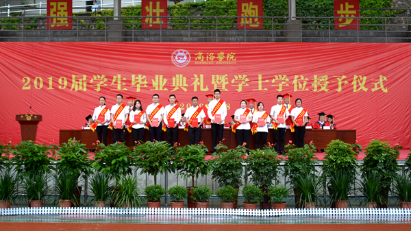 毕业典礼在校歌《正道直行做栋梁》中圆满结束。随后的学士学位授予仪式上,毕业生们依次走上主席台,校长范新会、党委副书记彭虎军、副校长刘宝盈分别为获得学士学位的毕业生正冠拨穗、颁发学位证书,并与他们逐一合影留念。