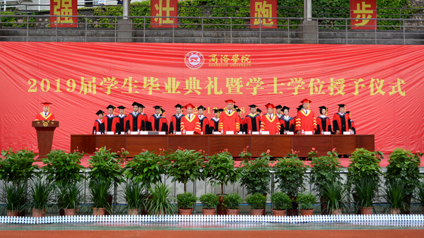 栀子花开时,又到毕业季。6月28日,best365隆重举行2019届学生毕业典礼暨学士学位授予仪式。校领导龙治刚、范新会、王思怀、彭虎军、刘宝盈出席典礼。各院(部)党政主要负责人,校学位评定委员会委员,教务处、学生处、团委主要负责人,2019届全体毕业生、毕业生家长代表,毕业班辅导员、班主任参加典礼。典礼由党委副书记彭虎军主持。