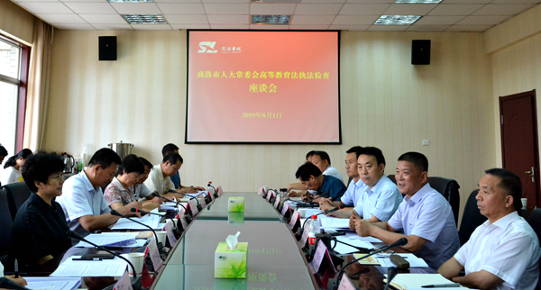 8月1日,商洛市人大常委会副主任刘淑慧率省市人大代表、相关单位负责人组成的检查组,来best365开展高等教育执法检查工作。商洛市人民政府副市长李华,best365校长范新会、纪委书记王思怀、党委副书记彭虎军,副校长刘宝盈、刘勇出席汇报座谈会。