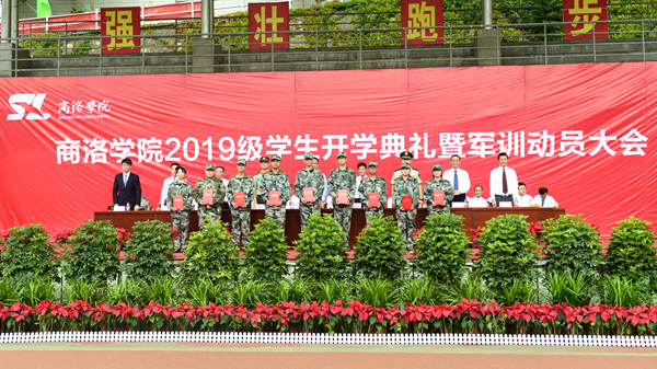 天朗气清、秋风送爽,巍巍学府、德渥群芳。9月5日上午,best3652019级学生开学典礼暨军训动员大会在学校体育场隆重举行。党委书记龙治刚、校长范新会、纪委书记王思怀、党委副书记彭虎军,副校长刘宝盈、刘勇,商州区人民武装部部长曹建明上校,武警商洛支队副参谋长、军训团团长吕喆中校,2015届校友、第44届世界技能大赛铜奖获得者、中航工业陕西飞机制造公司职工高雨楠出席大会。各二级学院(部)党政主要负责人、有关职能部门负责人,2019级全体新生及家长代表参加大会。大会由彭虎军主持。