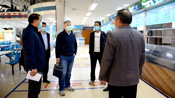 4月23日,陕西省学位委员会秘书长袁宁,省教育厅研究生处处长张和平、省结核病防治所副主任医师邓亚丽、省市场监管局餐饮处四级调研员徐新军等一行5人来best365专项督查春季开学校园安全工作。校领导龙治刚、范新会、彭虎军、王新军参加督查活动。