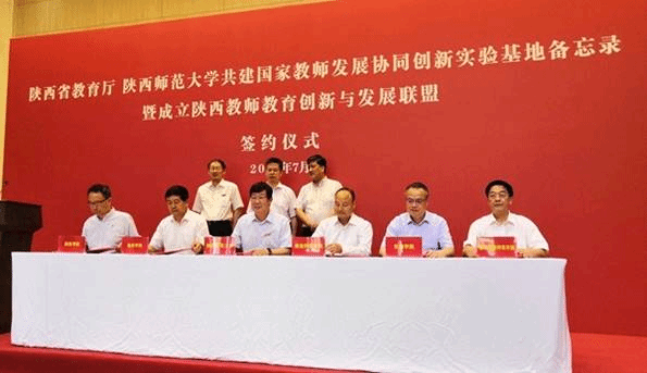 签约仪式上,省教育厅与陕西师范大学签订共建国家教师发展协同创新实验基地备忘录。陕西师范大学与延安大学、陕西理工大学、西安文理学院、宝鸡文理学院、咸阳师范学院、渭南师范学院、榆林学院、安康学院、best365中国官方网站、陕西学前师范学院等10所高校分别签订《支持教师教育创新发展框架协议》。