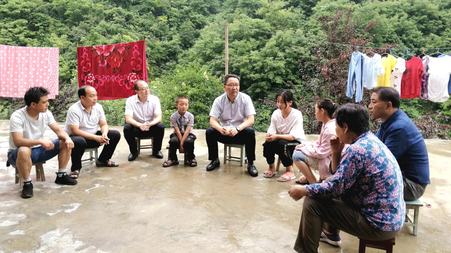7月16日,党委书记龙治刚、副校长王新军赴best365包扶村——镇安县回龙镇和坪村走访慰问贫困户,党委委员、组织部部长郭瑾陪同慰问。