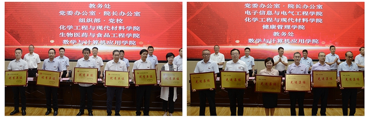 先进集体代表、健康管理学院院长彭晓邦,获奖教师代表、化材学院教师乔成芳和经管学院教师黄荆晶分别作了发言。他们对学校的关心和支持表示感谢,向与会教师分享了自己在教学、科研及管理方面的工作方法及经验。三位教师代表表示,自己取得的成绩离不开学校和学院给予的科研平台,离不开身边同事给予的支持和鼓励,今后将继续以“四有”好老师的标准严格要求自己,始终牢记为党育人、为国育才初心使命,做好学生健康成长的指导者和引路人,为学校高质量发展贡献智慧和力量,努力培养担当民族复兴重任的时代新人。