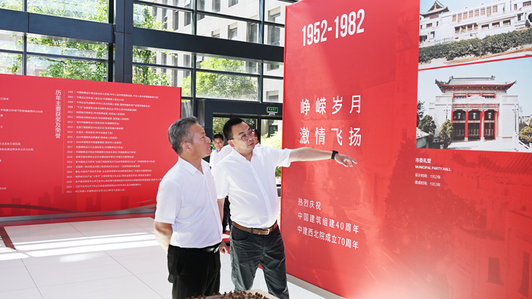 会前,张志昌、范新会、郭瑾一行在中国建筑西北设计研究院有限公司相关负责人的陪同下参观了70周年展厅和绿色能源院。