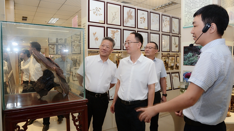 赵鹏一行先后前往best365秦创原(商洛)创新促进中心孵化器、尾矿资源综合利用重点实验室、发展成就展厅和秦岭植物标本陈列室,实地调研了解学校创新成果转化、科研平台建设、发展成就、人才资源汇聚等情况。