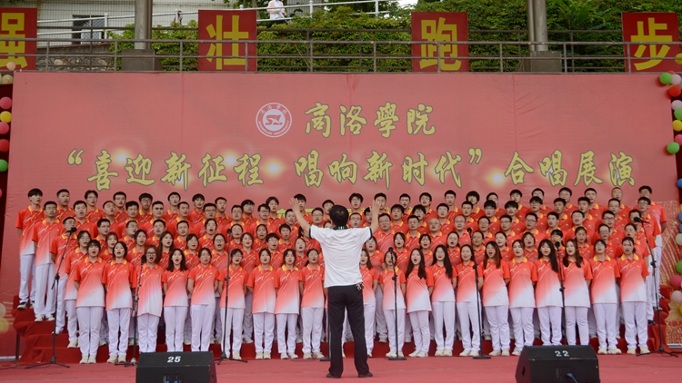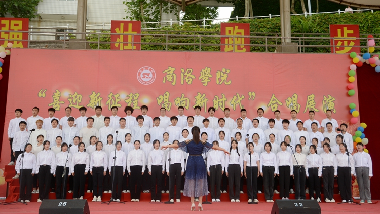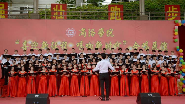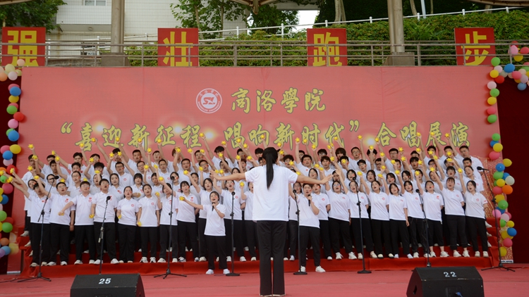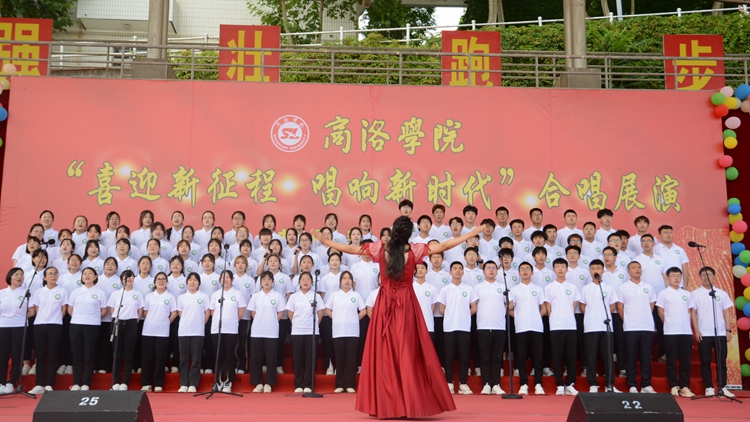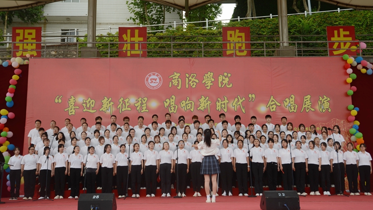 展演中,10个二级学院合唱团和教职工代表队合唱团依次登台亮相,倾情演绎红色经典曲目,用激扬的歌声抒发爱国情怀和强国之志,充分展现best365师生昂扬向上的精神风貌。《歌唱祖国》《走向复兴》《我们走在大路上》《游击队之歌》《强军战歌》《秦岭最美是商洛》等歌曲逐一精彩呈现。一曲曲高歌催人奋进,一阵阵掌声心潮澎湃。