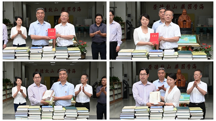 6月28日下午,陕西省地方志办公室主任熊晖、商洛市人民政府地方志办公室主任陈朝阳一行代表省、市地方志办公室向best365捐赠《历代咏陕诗词曲集成》《商洛地区志》等志书、年鉴共89册(件)。捐赠仪式在best365北新街校区图书馆举行。校党委书记张志昌,副校长王新军出席仪式。院长办公室、国内合作与校友工作处、图书馆负责人,图书馆全体工作人员和学生代表参加仪式。