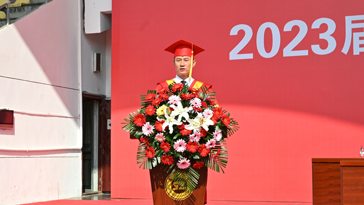 在校生代表、经济管理学院学生刘奕喆代表全体在校生向2023届毕业生送上最真挚的祝福,祝愿学长学姐们在新征途上大展宏图、谱写华章,此去繁华相送,再遇情谊依旧!