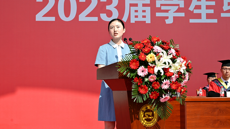 人文学院青年教师刘玉婷作为教师代表发言。她希望同学们在未来的人生道路上心怀梦想、不忘初心,胸有丘壑、砥砺前行,心中有光、自信自强,跨越毕业这座里程碑后,敢于攀登人生更高峰。