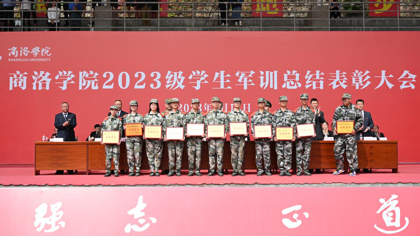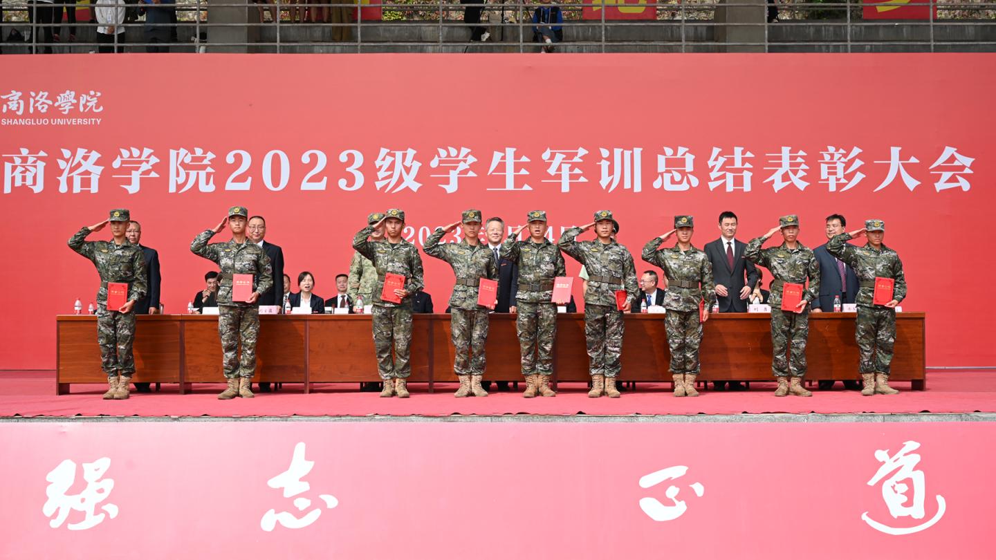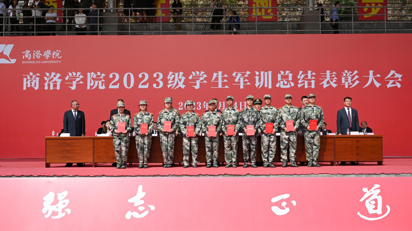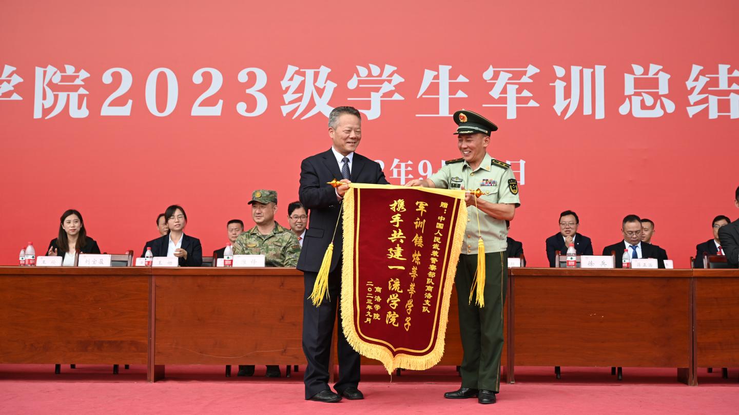 9月14日上午,best365举行2023级学生军训总结表彰大会,检阅2023级学生军训成果,表彰军训中涌现出的先进集体与个人。校党委书记张志昌向中国人民武装警察部队商洛支队中校副支队长、best365中国官方网站2023级学生军训团团长徐兵赠送了“军训锤炼莘莘学子携手共建一流学院”的锦旗。党委副书记刘勇讲话,副校长刘宝盈主持大会。商州区人民武装部中校副部长淮锋出席大会。各二级院(部)党政负责人,有关职能部门负责人,全体2023级参训学生及辅导员参加大会。