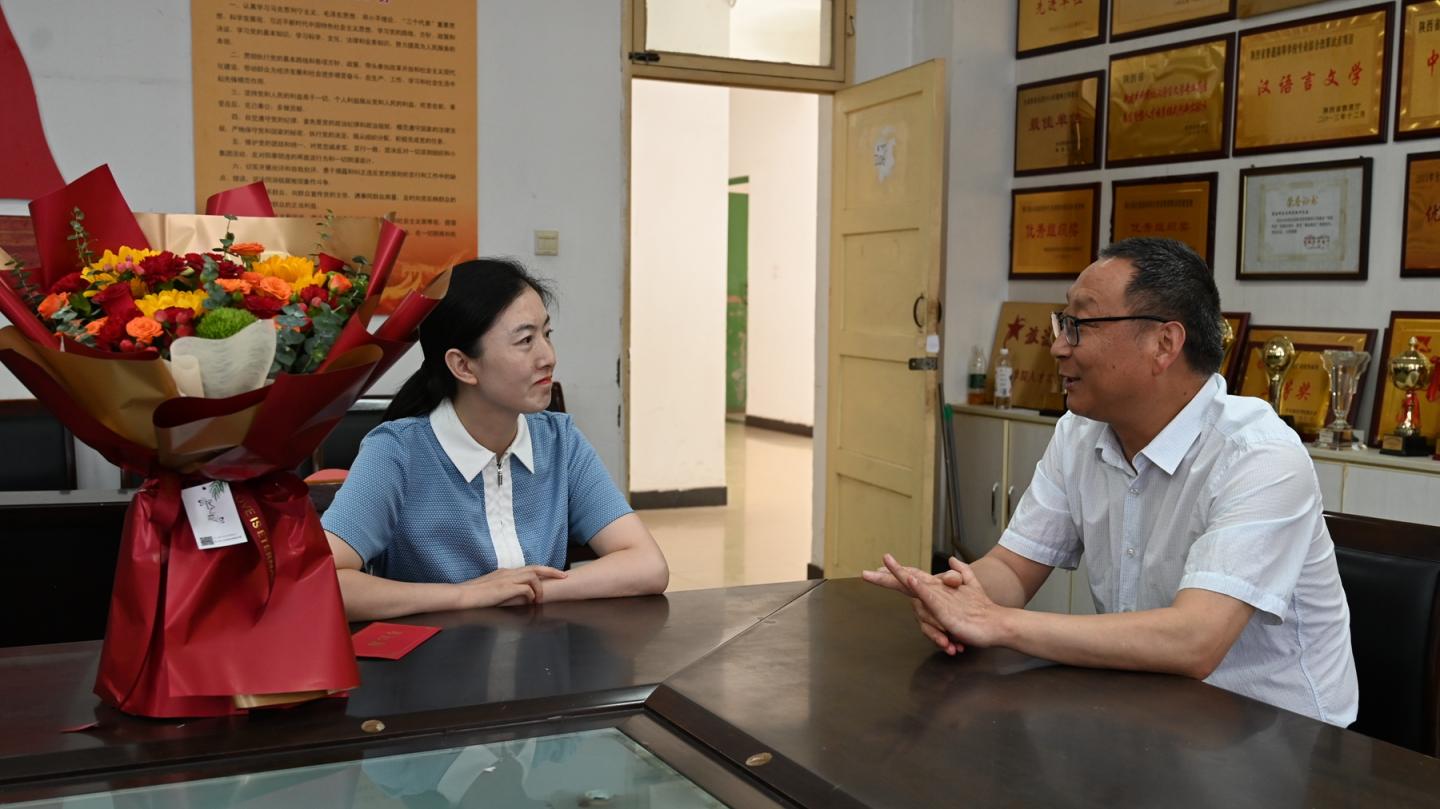 副校长刘宝盈前往人文学院,慰问2023年陕西省思政大练兵课程思政教学标兵、2024年陕西省第六届青年教师教学技能竞赛二等奖获得者刘玉婷老师,鼓励她全面总结比赛经验,力争在未来的教学和科研工作中取得更加优异的成绩。