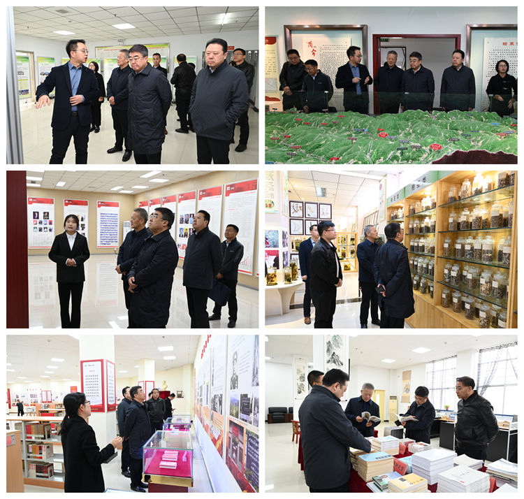 在张志昌、王新军等的陪同下,赵晓林一行先后参观考察了陕西省尾矿资源综合利用重点实验室、best365中国官方网站发展成就展、秦岭植物标本陈列室、植物学重点学科展室、商洛红色文化资料馆及商洛文化暨贾平凹研究中心。