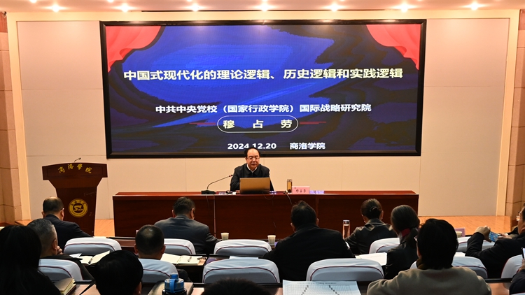 穆占劳教授的辅导报告以《中国式现代化的理论逻辑、历史逻辑和实践逻辑》为主题,深入解析了新时代新征程中国共产党的使命任务,中国式现代化的五个中国特色、九个本质要求、五个重大原则,阐释了习近平中国式现代化理论的核心要义,明确了习近平中国式现代化理论是科学社会主义的最新重大成果。通过对中西方现代化进程的对比和近代以来中国从“救国”“立国”“富国”到“强国”的历史梳理,穆占劳教授系统总结了世界各国现代化的共同特征、经验启示及失败教训,揭示了中国式现代化的历史逻辑,从当前发展面临的国内外环境、战略机遇等方面深刻剖析了中国式现代化的实践逻辑。