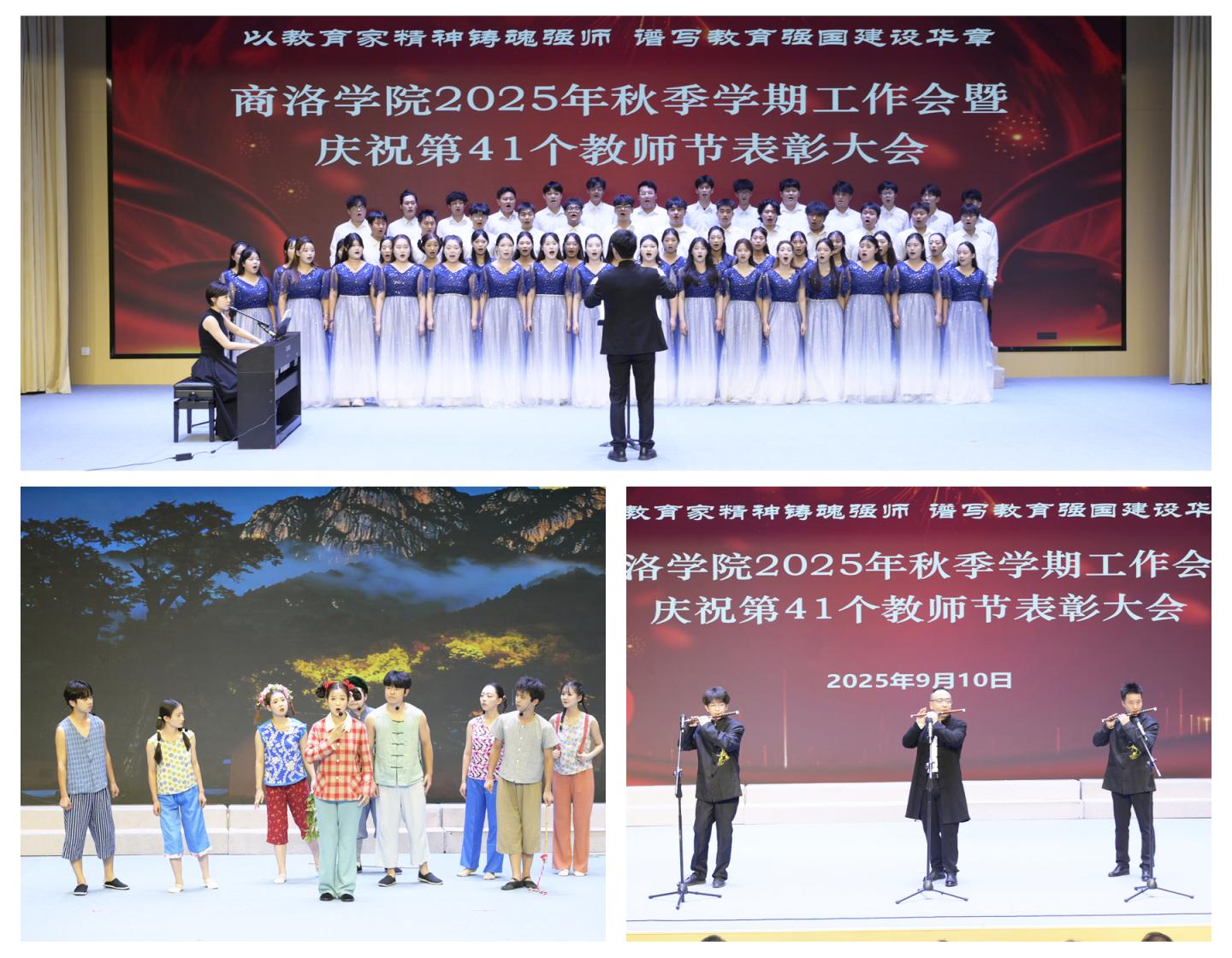 艺术学院师生会前表演了商洛花鼓《月亮光光》选段《追赶星星和月亮》、笛子合奏《扬鞭催马运粮忙》、合唱《飞来的花瓣》等文艺节目,师生共同欢庆节日。
