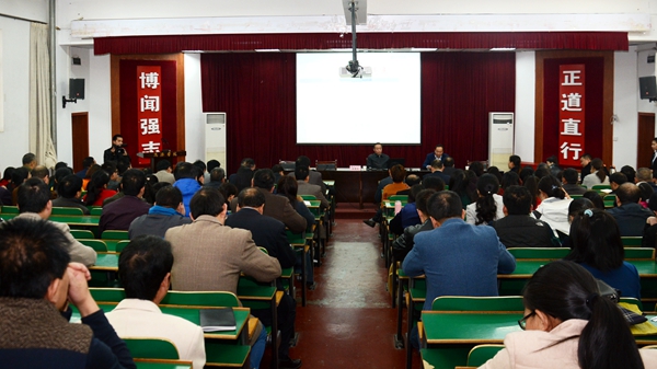 ——团长深度解读,实现在职教师全覆盖。11月13日至14日,王思怀分别为全校机关、教学院部教职员工作了题为《十九大的新亮点》的宣讲报告。他围绕10个关键词“新时代、新矛盾、新使命、新方略、新目标、新思想、新提法、新领袖、新背景、新未来”,对党的十九大报告进行了深入解读,深刻阐述了中国共产党人的“初心”与“使命”,并详细讲述了十九大确定的发展新方略以及在全面建成小康社会基础上实现建成社会主义现代化强国的新目标。鼓励全校教师砥砺奋进,为学校和国家发展贡献力量。