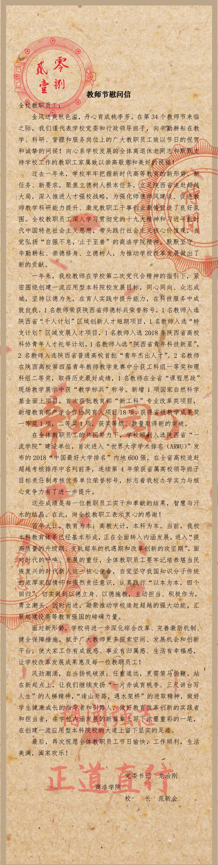 2018年教师节慰问信