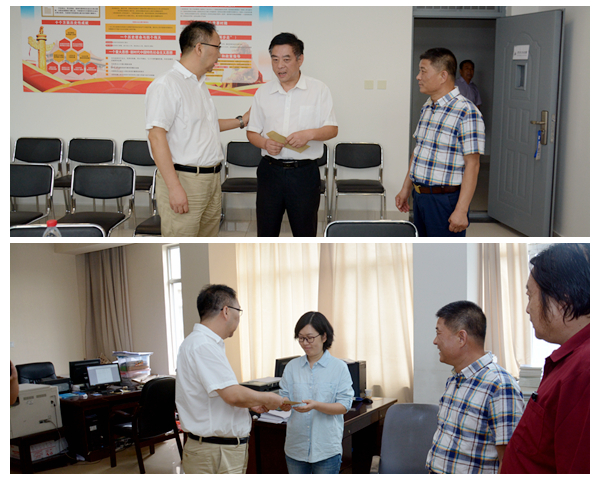 龙治刚、范新会深入各学院和教师家中走访慰问了化材学院邸友莹教授等5位优秀教师代表、经管学院郭建文等3位家庭困难教师代表、人文学院郭敏厚等2位离退休教师代表,认真询问他们的工作、生活情况,对他们为学校建设与发展做出的贡献表示感谢,并为他们送上了慰问金和学校党政的关怀。
