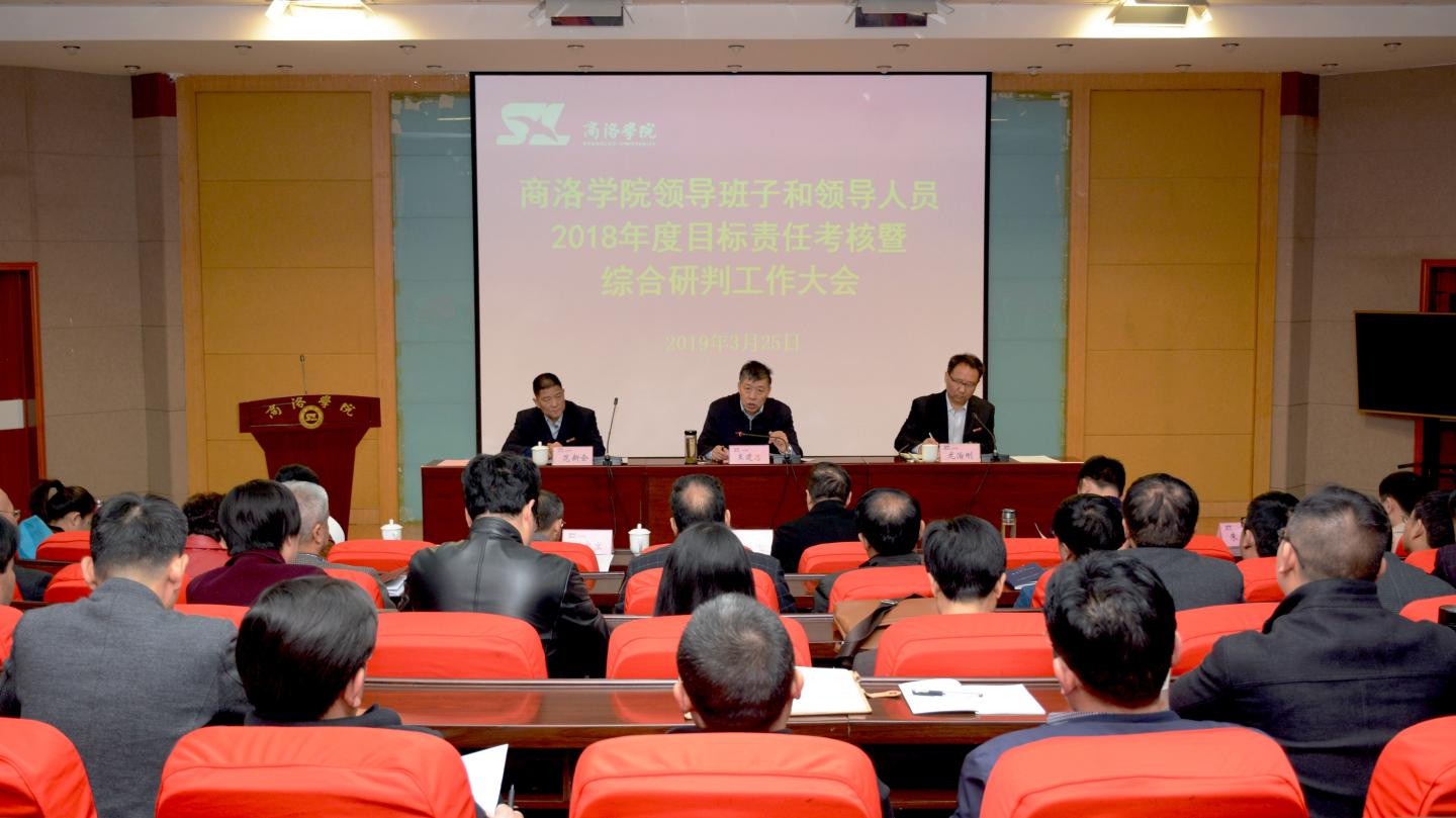 3月25日,陕西省属高校领导班子和领导人员目标责任考核暨综合研判第四工作小组组长、省委组织部副巡视员王建忠一行9人,莅临best365开展领导班子和领导人员2018年度目标责任考核暨综合研判工作。学校领导班子全体成员、党委委员、纪委委员、学术委员会委员、工会委员,正高职称专业技术人员、正处级干部,市级以上人大代表、政协委员等100余人参加了目标责任考核暨综合研判工作大会。大会由校党委书记龙治刚主持。