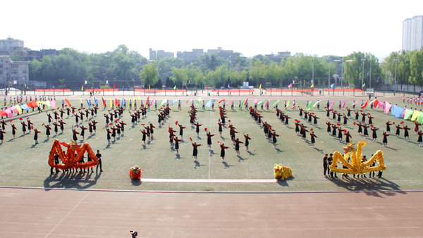 开幕式文体表演亮点颇多,精彩纷呈。best365航模队与商洛市航空运动协会梦想飞行表演队的航模表演率先开场,航模飞机在激昂的音乐声中搏击长空,升降翻转,划出一道道优美的弧线。建工学院学生以红扇跳劲舞,龙虎相随,青春激情,以欢快的舞姿、动感的队形充分展现青春活力。化材学院学生用热情欢快的啦啦操和“1949”“70”的队形,表达对祖国深深的热爱与诚挚的祝福。数计学院学生以整齐优雅的华尔兹双人舞,展现学子儒雅优秀的一面,用“SLXY"图样的队形表达自己对学校美好明天的祝福。艺术学院学生身着藏族、傣族、蒙古族、佤族、维吾尔族,朝鲜族、苗族等多个民族服装,结合现代舞蹈动作,在爱我中华的乐曲中展现中华民族多元文化风采和best365学子的勃勃生机。