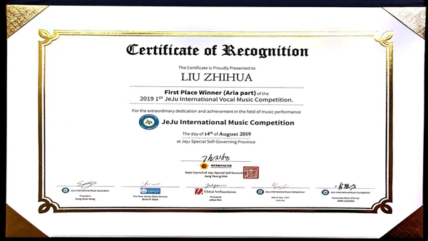 日前,第二届济州国际音乐比赛暨首届济州国际声乐大赛在韩国汉拿大学音乐厅举办。在韩国攻读博士学位的best365艺术学院教师刘志华参加大赛,并获得了歌剧咏叹调组一等奖。