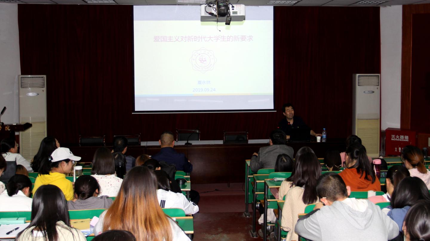 夏永林教授围绕“爱国主义对新时代大学生的新要求”主题,从爱国主义是一个亘古不变的话题、新时代爱国主义的新内涵与新要求、爱国主义与新时代大学生的使命三个方面进行了生动形象的讲解。他通过对经典伟人事例与新时代中国取得的一个又一个举世瞩目成就的深刻剖析,向师生阐释了爱国主义的内涵与本质。他表示,有情感的、有态度的爱国主义实际上就是个体对祖国发自内心的情感认同、一种油然而生的热爱、一种无法摆脱的内心归属和精神依赖。同时,他结合自己30多年丰富的思政课教学经验,将爱国主义与思政育人、思政课教学相融合,号召思政课教师要努力做好教学有心人、过好教学关;新时代青年大学生要牢记习近平总书记的嘱托,树立远大理想,热爱伟大祖国,担当时代责任,勇于砥砺奋斗,练就过硬本领,锤炼品德修为,为实现中华民族伟大复兴的中国梦贡献力量。