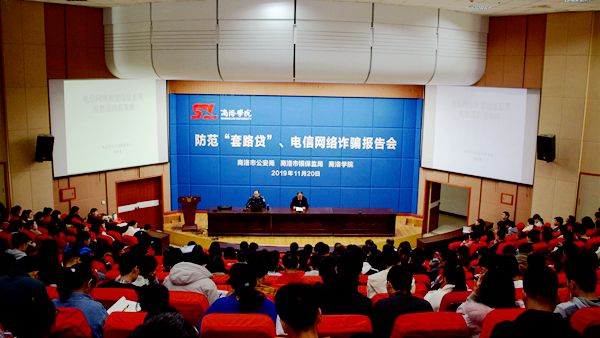 为贯彻落实陕西省公安厅、教育厅《关于开展“百城千校”集中宣传活动的通知》文件精神,进一步提高best365广大学生防范“套路贷”、电信网络诈骗的意识和能力,保障广大师生的财产安全,11月20日,best365联合商洛市公安局、市银保监局开展防范“套路贷”、电信网络诈骗集中宣传活动,向广大师生发放各类防范诈骗资料2000余份,并举办了防范“套路贷”、电信网络诈骗报告会。保卫处、学生处相关工作人员,全体辅导员,学生安全信息员共计400余人聆听了报告。