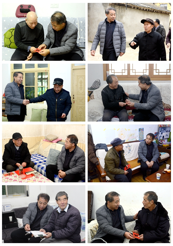 1月14日,在党委办公室、离退休职工工作处相关负责人的陪同下,副校长王新军赴郭贞贤、李英杰、何志奇等8位离退休老同志的家中,与他们促膝交谈,为他们送去学校的关怀和祝福,感谢他们为学校改革发展所作的奉献,叮嘱相关部门为他们提供更加贴心的服务,希望他们老有所为、老有所乐、继续发挥余热。