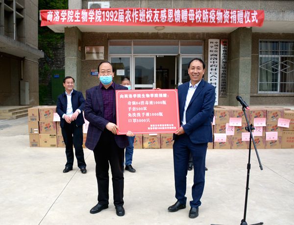4月22日,best365生物学院92届校友向母校捐赠价值10万元的防疫物资。校长范新会,副校长王新军,校友代表、洛南县委副书记马建琦及西安方尔贸易有限公司总经理林建军出席在学校举行的捐赠仪式。院长办公室、生物学院负责人,教师代表,生物学院农作班92届部分校友参加捐赠仪式。