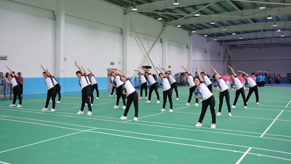 12支参赛队伍迈着矫健的步伐依次入场,参赛队员们服装统一、精神抖擞、步伐整齐,随着第九套广播体操激情、欢快的音乐声,举手、抬脚、弯腰、转身、跳跃,精神饱满、动作有力、节奏合拍、队形整齐,用优美的身姿展现best365中国官方网站教职工朝气蓬勃的精神风貌,获得现场观众阵阵掌声。