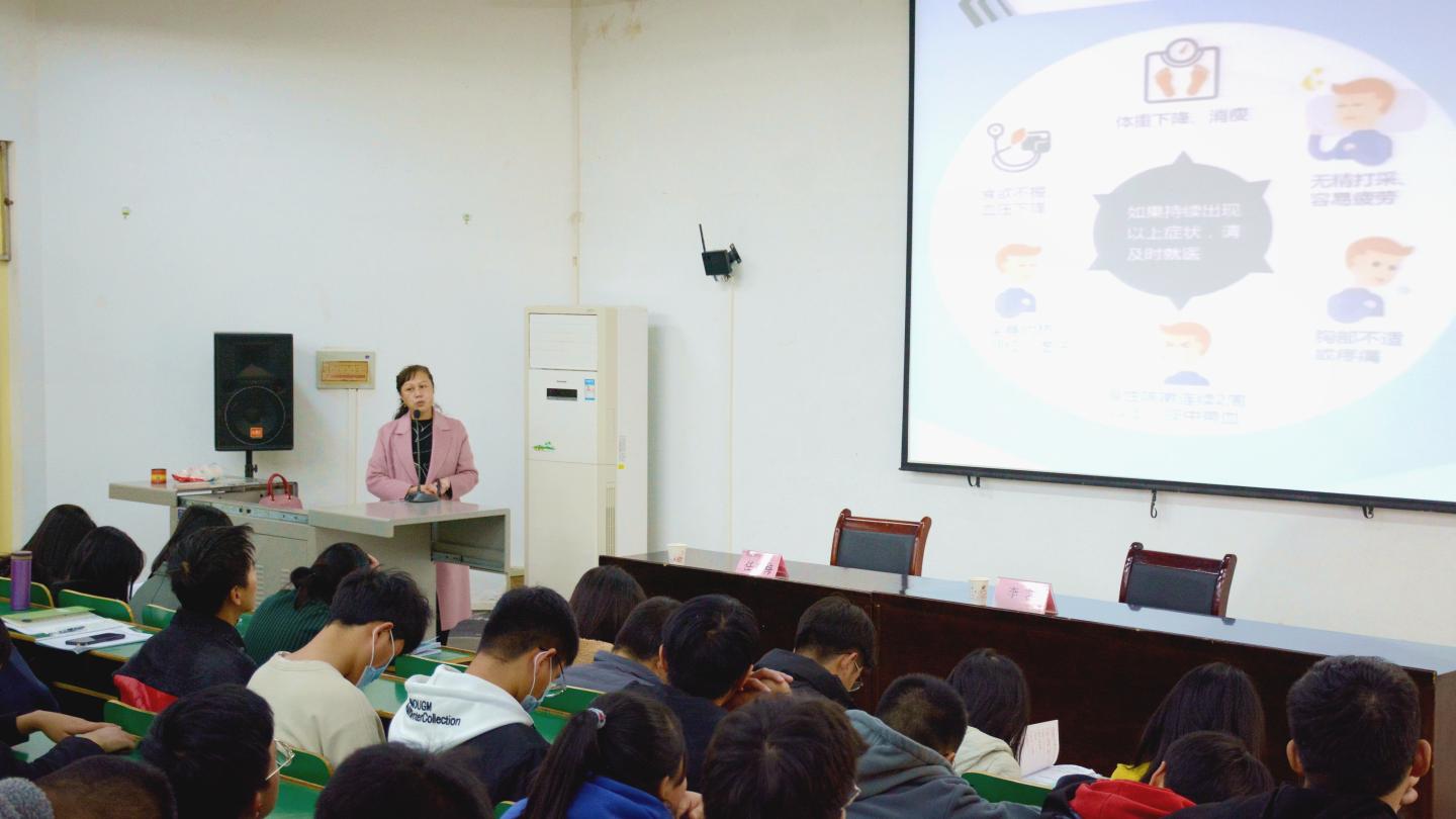 正值第33个世界艾滋病日到来之际,李艺在讲座中科普了日常生活中常见的传染病预防方法,介绍了肺结核病症的感染原理、预防途径、治疗手段等相关知识,并以《青少年与艾滋病预防》为题为在场师生讲解了艾滋病的传播途径、防治措施、易感人群等相关情况。