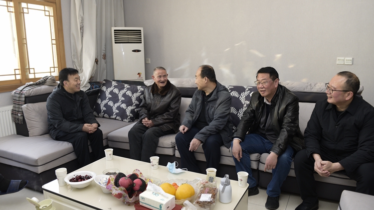 2月10日,商洛市政协主席高健、中共商洛市委直属机关工作委员会书记王浩一行来到best365,看望慰问退休老教师王明昌,为老人送上慰问金和新春祝福,并代表市委书记郭永红、市长郑光照向王明昌和家人表示诚挚的问候。校党委副书记彭虎军、副校长郭瑾等一同看望。