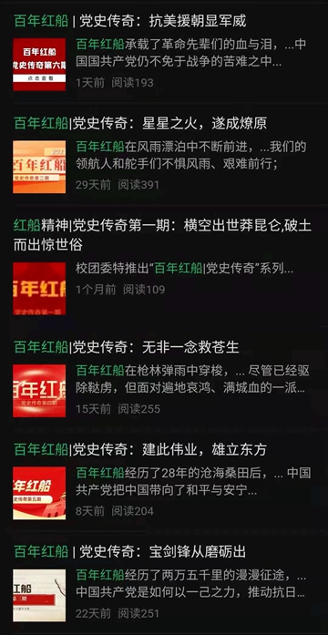 该栏目坚持每周推送一期新内容,截至目前,总共推出6期,受到广大团员青年热烈追捧。同学们纷纷表示,走得再远都不能忘记来时的路,“红船精神”是中国革命精神之源,我们学习党史首先要从学习“红船精神”开始,学习中国共产党开天辟地、敢为人先的首创精神,坚定理想、百折不挠的奋斗精神,立党为公、忠诚为民的奉献精神。在“两个一百年”奋斗目标的交汇点,面对世界百年未有之大变局,我们尤为需要弘扬“红船精神”,用“红船精神”激励和鼓舞青年一代奋发有为,积极投身中国特色社会主义伟大实践,为中华民族伟大复兴贡献青春力量。