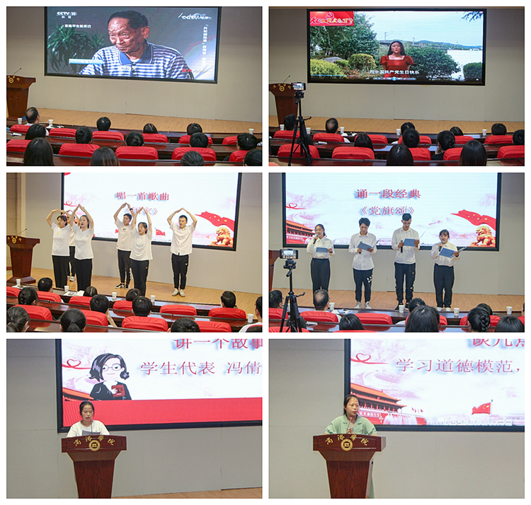 此次道德讲堂分唱歌曲、看短片、讲故事、谈感悟、诵经典、献祝福6个环节。活动中,学生表演了手语舞《国家》,歌颂伟大的祖国。集体观看了短片《“共和国勋章”获得者:袁隆平》,重温了袁隆平院士用一生的时间造福国民乃至全人类的光辉事迹,深刻感悟袁隆平院士勇攀高峰的科学精神、脚踏实地的追梦精神及淡泊名利的奉献精神。朗诵了红色诗歌《党旗诵》,激励全体青年学子勇担使命,坚定初心、守护初心、永葆初心,在不懈奋斗中绽放青春。该院学生还录制了祝福视频《献礼建党100周年》,用一句句祝福语道出了浓厚的爱党爱国之情。期间,2021年第一季度“商洛好人”、数计学院学生冯倩向大家讲述了自己少年时期的坎坷经历,分享了自己在面对困难与挫折时,用持之以恒的努力和真诚无私的爱坚持对真善美的不懈追求的感悟。
