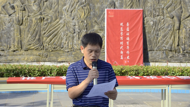 为贯彻落实全国语言文字会议精神,传承弘扬以语言文字为载体的中华优秀文化,进一步增强best365师生学习国家通用语言文字意识,9月13日下午,人文学院举办了“普通话诵百年伟业,规范字写时代新篇”第24届普通话推广宣传周活动启动仪式。人文学院院长张文诺作动员讲话,教务处副处长高扩昌宣布“推普周”活动正式启动。