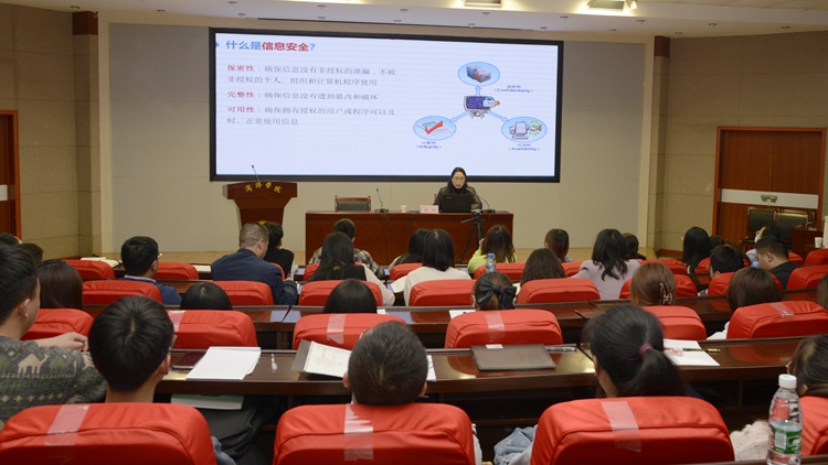 报告会上,喻钧教授以短视频《一个人的普通一天》为切入,解读了什么是信息安全、信息安全要素和特性。结合国际和国内有影响力的重大网络安全事件,分析了信息安全面临的威胁。以《商学院》杂志《别忘了关门》的小故事为例,介绍了常见网络安全攻击手段,阐述了培养信息安全意识的重要性。解读了国家网络安全政策及《国家网络安全法》的主要框架,并向师生介绍了信息安全防护的主要方法。喻钧教授还向大家分享了西安工业大学在网络安全人才培养方面的经验和做法,她呼吁广大师生要提高安全防范意识,警惕各种形式的安全陷阱和诈骗手段,关注信息安全,学习安全知识,遵守安全法规,做好安全防护,为维护国家安全作出应有的贡献。