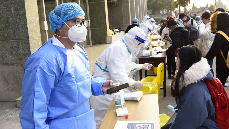 目前,全体考务人员和考生已完成核酸检测,检测现场秩序平稳有序,为研考顺利安全开展提供了有力保障。