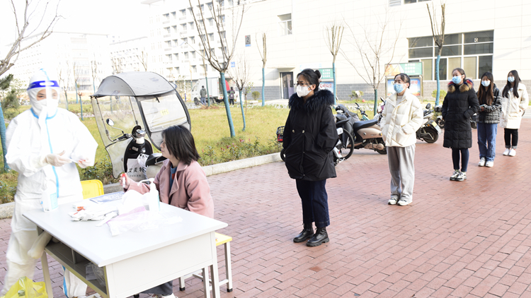 按照学校统一安排,师生前往核酸检测点,按照疫情防控工作要求进行有序采样。