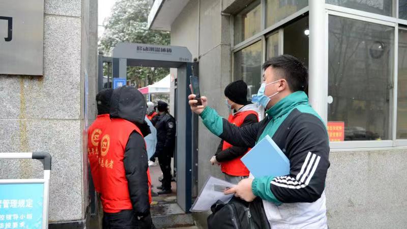 挺身而出,发挥党员先锋作用。因借考考生人数增加,考务工作量增大,校党委22日晚向全校党员发出号召,征集35名党员志愿者填补考务人员缺口。全体党员踊跃报名,于当晚23:00前征集志愿者110余人,参与到丹江校区隔离考场监考和考务工作中。4名党员驰奔西安外事学院,为best365报考点滞留在西安的39名考生开辟考场、组织考试。6名党员义务投入个人车辆,设立党员先锋岗,随时待命应对突发事件。25日上午8:23,一名校外考生因不熟悉环境,错到北新街校区参加考试,best365党员志愿者了解情况后,会同公安人员以最快速度将考生直送丹江校区,使其能够按时参加考试。学校招生志愿者协会和青年志愿者协会安排65名学生,协助查验入场凭证和考场引导等工作。他们凌晨6点准时到岗,在风雪中坚守职责,用实际行动践行“党旗所指就是团旗所向”的使命。