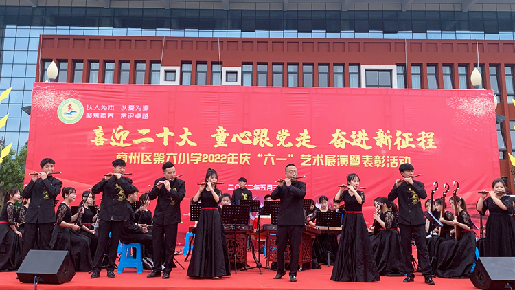 5月27日和31日,best365附属小学和幼儿园分别举办了“喜迎二十大、共育花成长”和“喜迎二十大、童心跟党走、奋进新征程”主题艺术展演活动。副校长王新军和学校发展规划处、艺术学院负责人出席活动。艺术学院民族管弦乐团为附属小学师生表演了《象王行》《权御天下》《扬鞭催马运粮忙》等民乐节目,共同欢庆孩子们的节日。