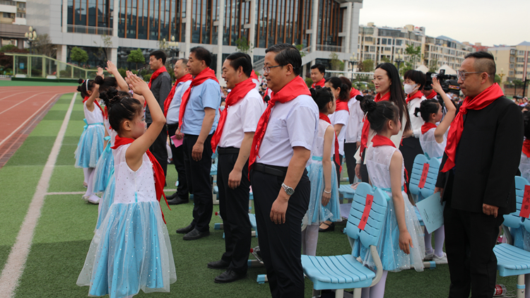 王新军在致辞中表示,当下的少年儿童是幸运和幸福的一代,也是肩负重担的一代,希望孩子们珍惜眼前来之不易的美好生活,学好习、做好事、立志向、树目标,努力成长为合格的社会主义建设者和接班人,把国家建设的更加美好富强,实现中华民族伟大复兴。