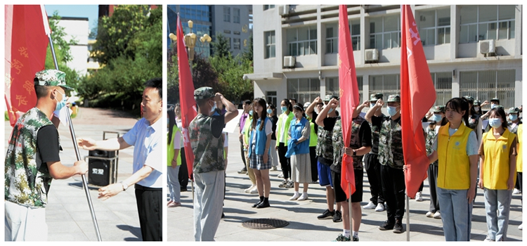 在热烈的掌声中,彭虎军向退役军人志愿服务队授旗,志愿者代表谭佳豪接旗。