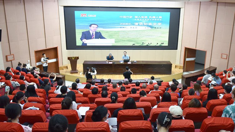 李春雷在报告中广泛列举古今丰富的文学实例,深刻论述了纪实或报告文学的历史及发展状况,阐明了自己对纪实或报告文学独特的见解。他希望广大文学创作者和青年学生能及时更新对纪实或报告文学的认识,积极探索、深入思考,用笔深刻地记录家乡、社会的发展变迁,真实、真情、震撼地“讲好中国故事”,真正发挥报告文学对社会发展的重要作用。