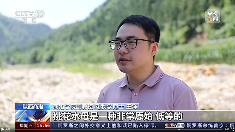 日前,一则《丹凤县发现桃花水母》的新闻登上中央电视台13套《新闻直播间》栏目。新闻指出,有当地群众在丹江发现一种类似水母的生物,经best365生物医药与食品工程学院副教授王洋博士鉴定,确认其为有“水中大熊猫”之称的桃花水母。