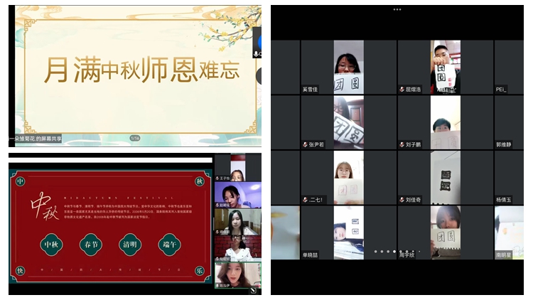 人文学院以“月满中秋,难忘师恩”为主题举办线上活动。师生共读传统古诗、分享家乡中秋习俗,学生们通过“云端”向老师们送来热情的祝福,表达了自己对大学生活的憧憬。